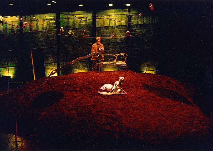 Concept _The archaic rhytm of a greenhouse-machine, which has no more professional attendence. Plants are to be dying, the sprinkler system is out of control, it sprikles randomly. The few cactuses are the last witnesses of the original use of this location. On the ohter hand, the red ground, the seat bench, the wet green bog on the glassy wall is growing and growing. Clamminess, fust and muginess are creating a terrible headache atmosphere.