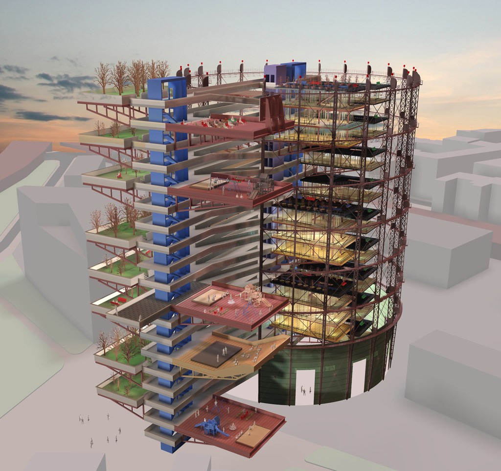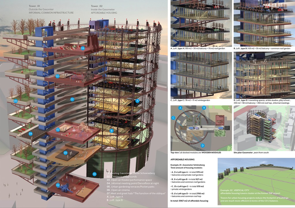 Concept _The project inside the famous landmark ‘Gasometer Schöneberg’ in Berlin accommodates different inhabitants and living situations – including families, single professionals, and couples – and provides suitable solutions for their various requirements.