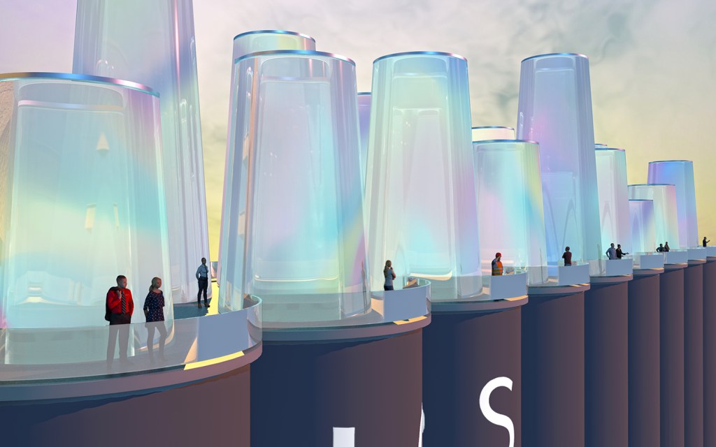 - 04_Labyrinth of lights _roof terrace with hologram-like glowing glass tubes