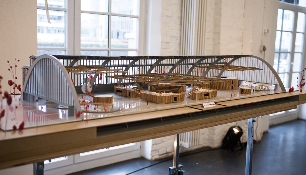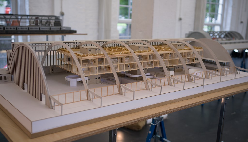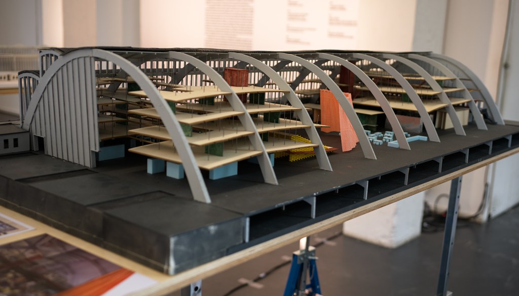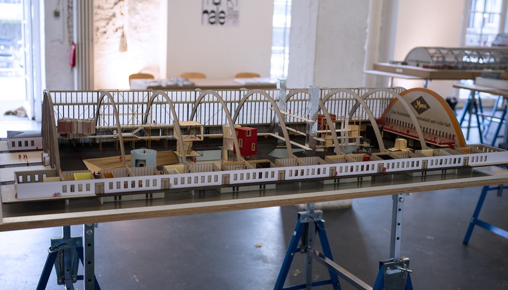 Students from the »Institute of Media and Design« at the Technical University of Braunschweig present a series of physical models that show alternative room atmospheres as well as sustainable and resource-saving proposals for the new use of the Großmarkthalle. Their goal is clearly defined: The Großmarkthalle is to become an attractive and urban-politically relevant cultural center in »Parkstadt Süd«. The designers are looking for answers to the question of what an urban society needs to make a place its social meeting place, its living room, its workshop. The personal communication of heterogeneous groups, especially after the challenging experiences during the coronavirus pandemic, is what makes such hybrid ‚multi-use‘ buildings so appealing. Comparable examples from Scandinavia or the Netherlands show us that it is essential for the success of such a community-building place that the programs and rooms are accessible daily and around the clock, can be booked online, are inclusive, cross-generational and, above all, free of charge.