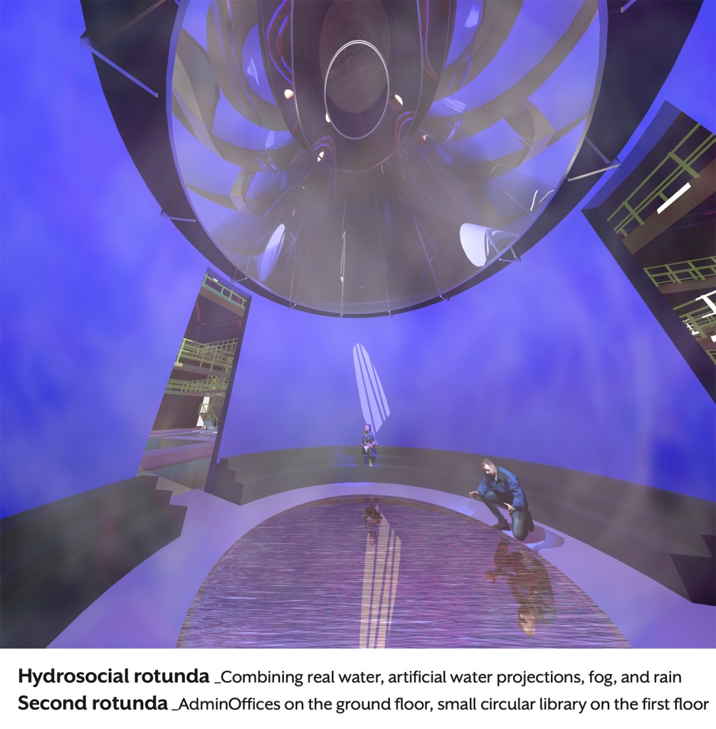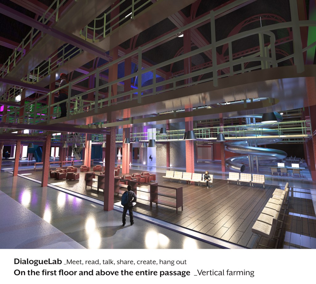 Natural light enters only through small apertures, as though the lightless body of a camera obscura had been perforated. Together with the randomly scattered skylights, this creates a poetic and enigmatic atmosphere of daylight. Rather than being a limitation, this reduced lighting becomes a powerful design feature. A complementary system of artificial light adds layers of zoned illumination and focused ‚light islands‘, enabling temporal and programmatic adaptability — creating spatial stages that can be used by diverse user groups 24/7.
